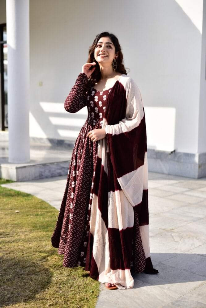 চায়না প্রিন্ট গাউন থ্রি-পিস